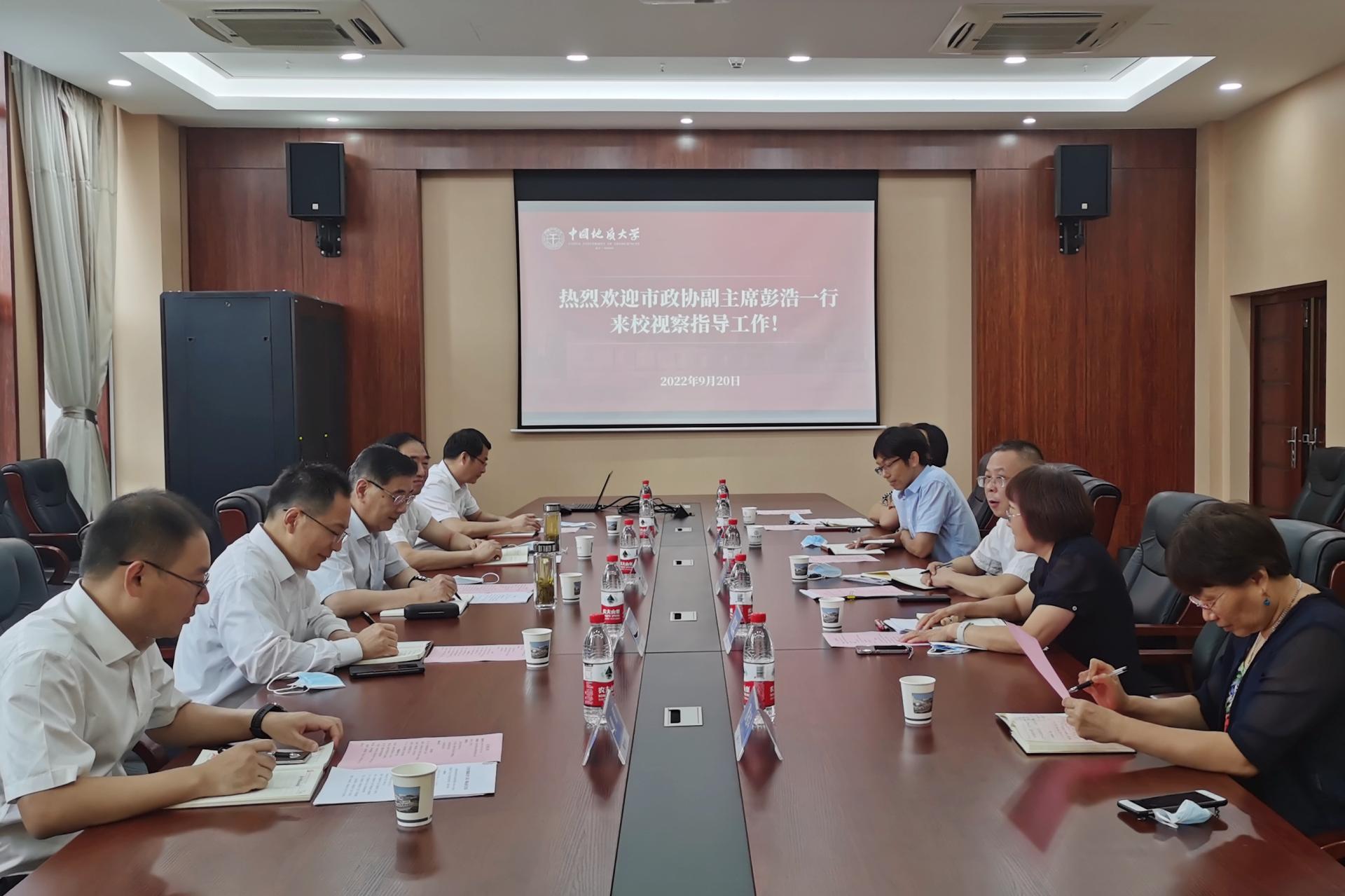 地大新闻网讯(通讯员 王艳平 摄影 周雅文)9月20日,武汉市政协党组副书记、副主席彭浩一行来校调研。市政协办公厅二级巡视员、提案委员会专职副主任徐双明,洪山区政协主席刘劲松,校党委副书记、纪委书记唐忠阳,党委组织部、统战部部长陈文武,市政协委员宁伏龙、曹桂华等参加座谈。