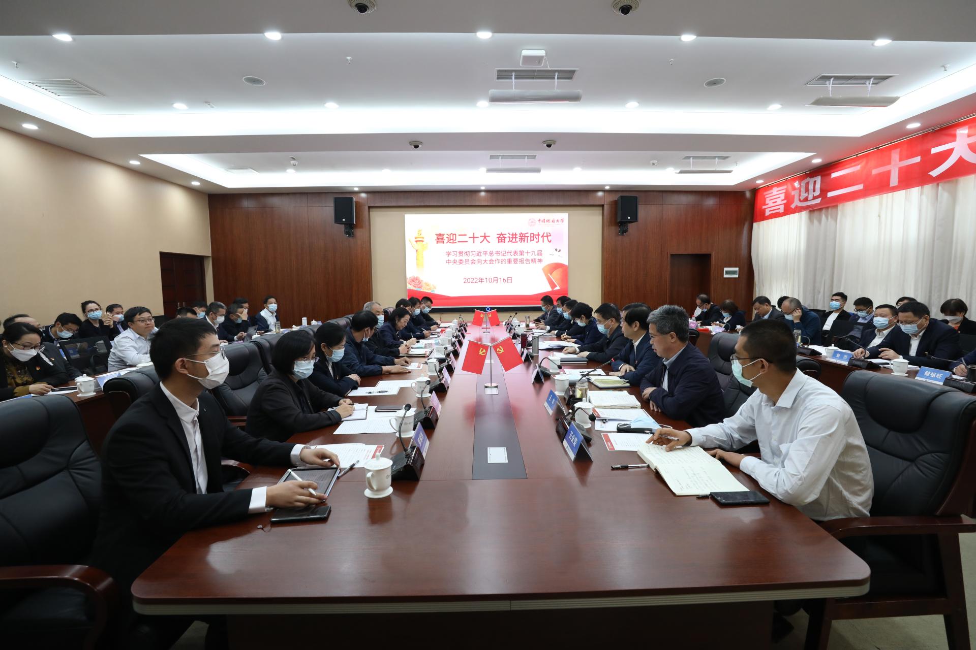 地大新闻网讯 (记者 孙彦钦)10月16日中午,我校在南望山校区教学综合楼A701会议室举行党委理论学习中心组学习扩大会议、学习贯彻党的二十大精神师生座谈会,学习宣传贯彻习近平总书记在党的二十大开幕会上代表十九届中央委员会所作的工作报告。在校校领导、教育部党建工作联络员、党委常委、校长助理,优秀党员、优秀党务工作者、先进基层党组织、优秀教师、青年人才、离退休党员、民主党派和无党派人士代表,思政课教师代表,学院党委书记、副书记代表,学生会、研究生会代表,以及相关单位主要负责同志参加座谈。
