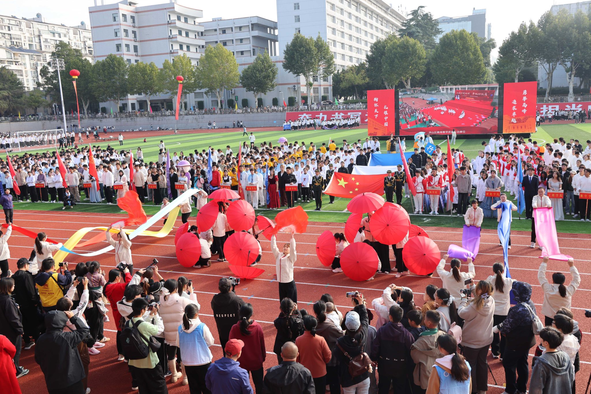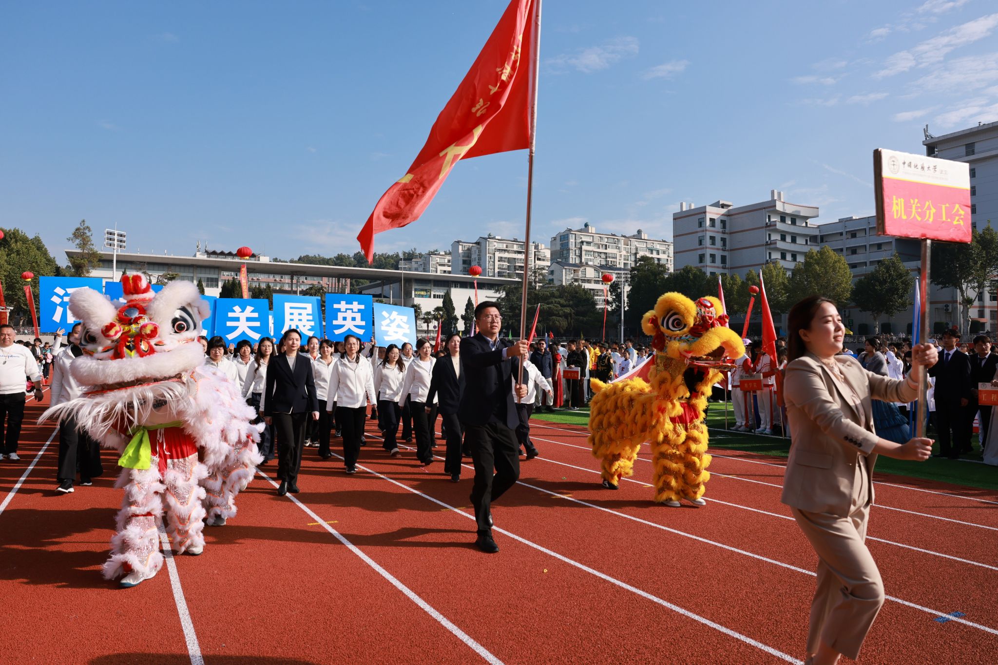 地大新闻网讯 青春飞扬,激情绽放,运动赛场斗志昂!10月24日,“中地云申杯”2025年中国地质大学运动会在南望山校区西区田径场举行。校领导刘杰、李建威、王林清、唐忠阳、胡守庚、王文起,党委常委、组织部部长陈文武,学校各二级单位负责人及各分工会、各学院代表队及赞助单位武汉中地云申科技有限公司代表参加开幕式。