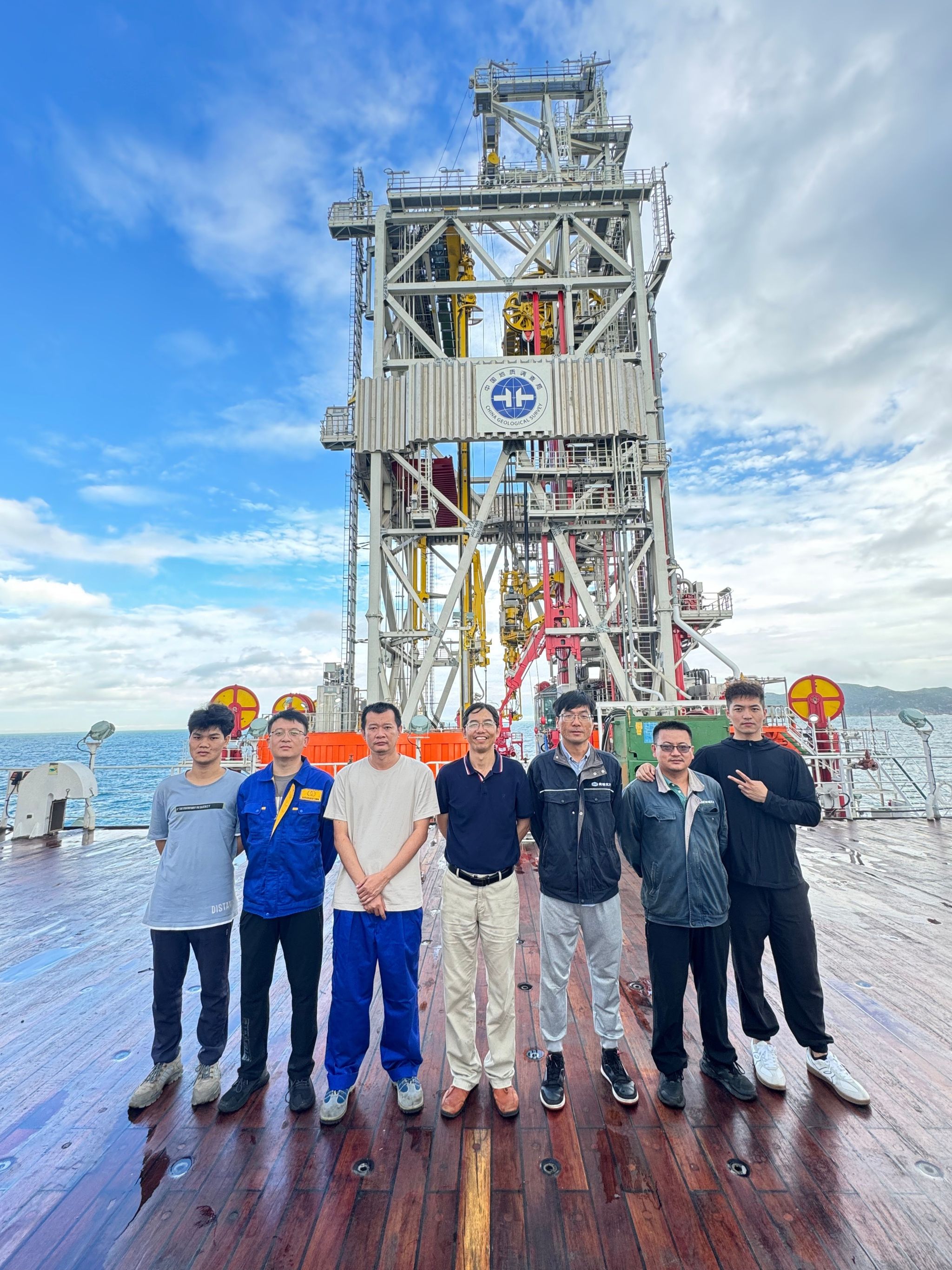 宁伏龙教授(中)带领团队参加“梦想”号海试。中国地质大学(武汉)供图