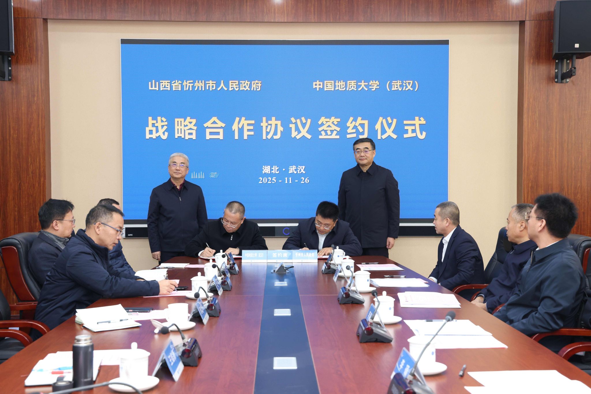 地大新闻网讯 (通讯员 宁蒙 摄影 孙彦钦)11月26日,我校与山西省忻州市人民政府签署战略合作框架协议。中国科学院院士王焰新、校党委副书记唐忠阳,忻州市市长李建国、副市长李硕,双方相关单位负责人参加签约仪式。