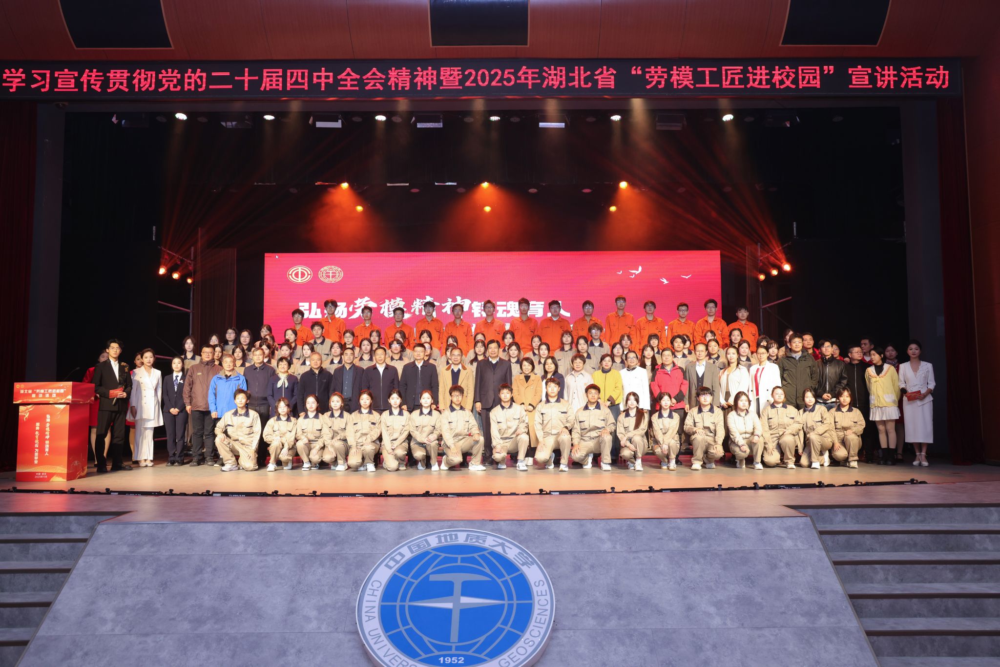 地大新闻网讯(通讯员 李梦琳 摄影 焦思勤 高雅 李迅)11月27日,由湖北省总工会主办,湖北省教科文卫体工会承办,我校协办的“弘扬劳模精神铸魂育人 服务教育强国为国攀登”学习宣传贯彻党的二十届四中全会精神暨2025年湖北省“劳模工匠进校园”宣讲活动在南望山校区西区弘毅堂举办,活动线上线下同步进行。湖北省总工会党组成员、经费审查委员会主任汪胜全,湖北省教科文卫体工会主席熊晓泉,校党委副书记、工会主席王甫及七百余名师生参加活动。