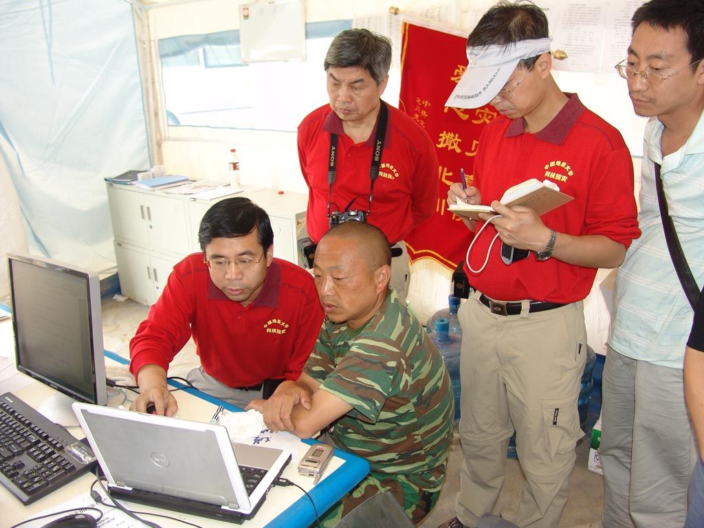 2008年汶川地震救灾期间,唐辉明向北川抗震救灾指挥部门讲解北川周边滑坡、泥石流防范对策