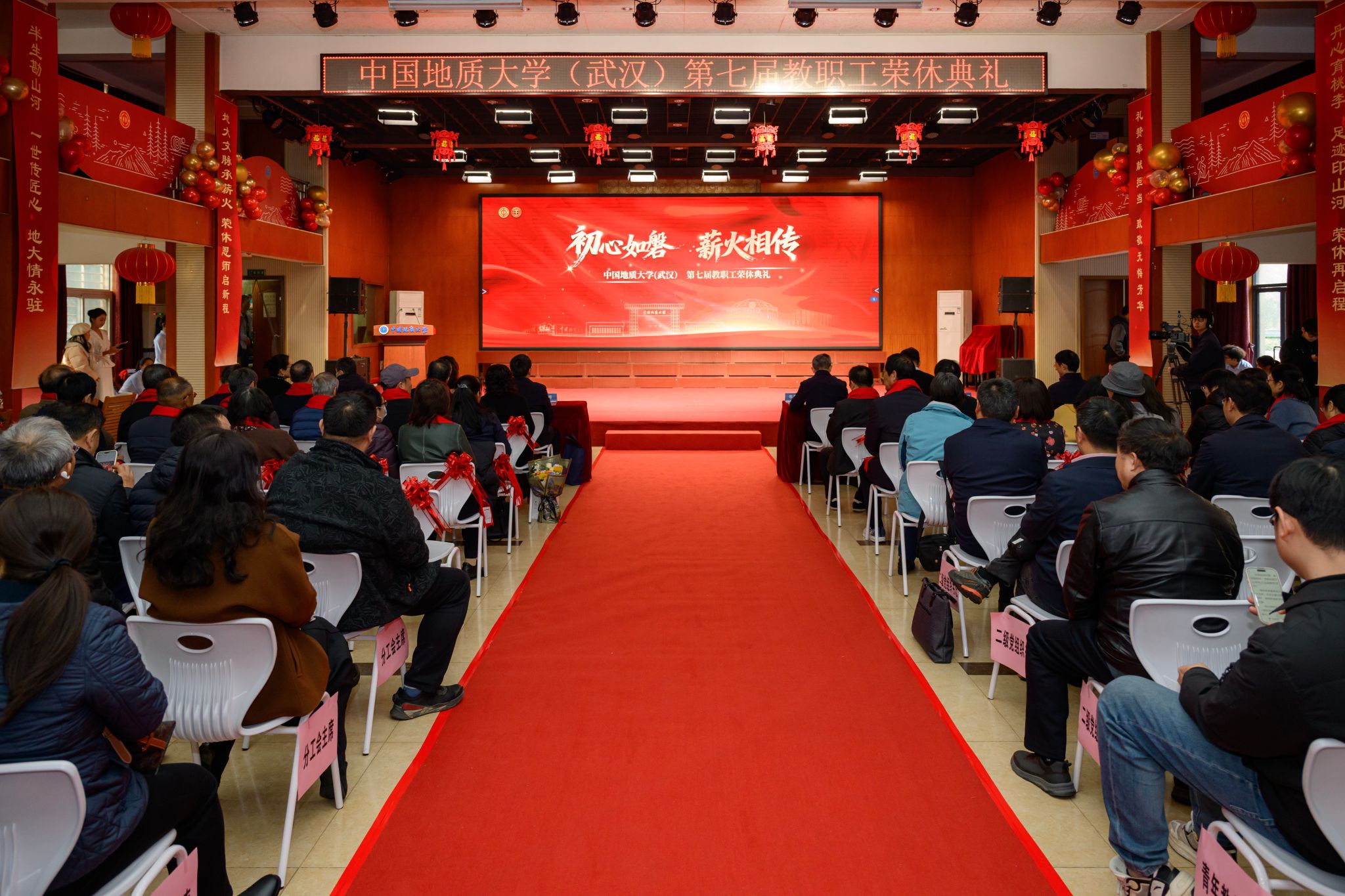 地大新闻网讯 (通讯员 张甜甜 李梦琳 摄影 程璜鑫 孙彦钦)一片冰心,春风化雨;两鬓霜华,桃李芬芳。12月19日,我校第七届教职工荣休典礼在南望山校区东区教工活动中心综合厅举行。校长李建威,校党委副书记、工会主席王甫,副校长夏帆,荣休教师、学校相关管理与服务部门负责人、各二级党组织书记、分工会主席,以及青年教师代表、学生代表近130人参加典礼。