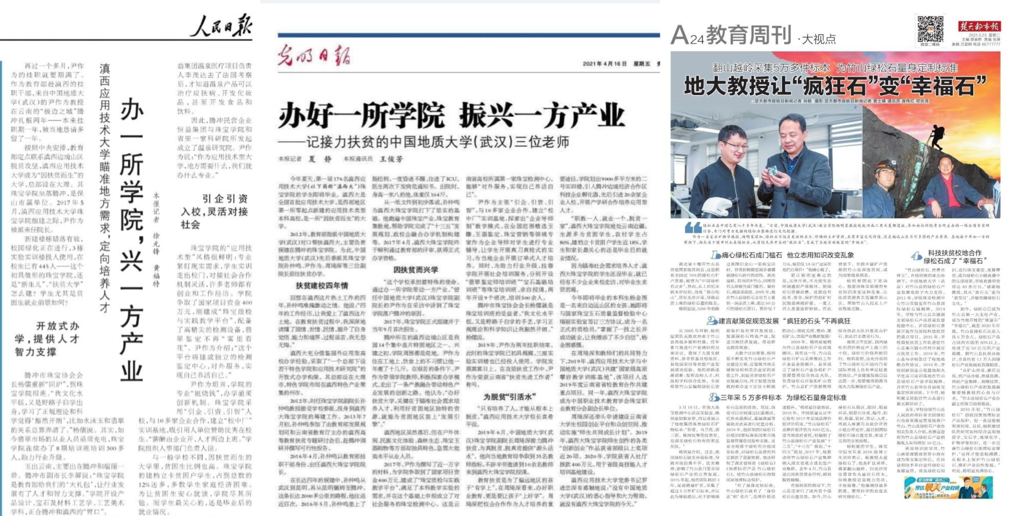 《人民日报》《光明日报》等主流媒体报道学院党员干部服务脱贫攻坚国家战略的先进事迹