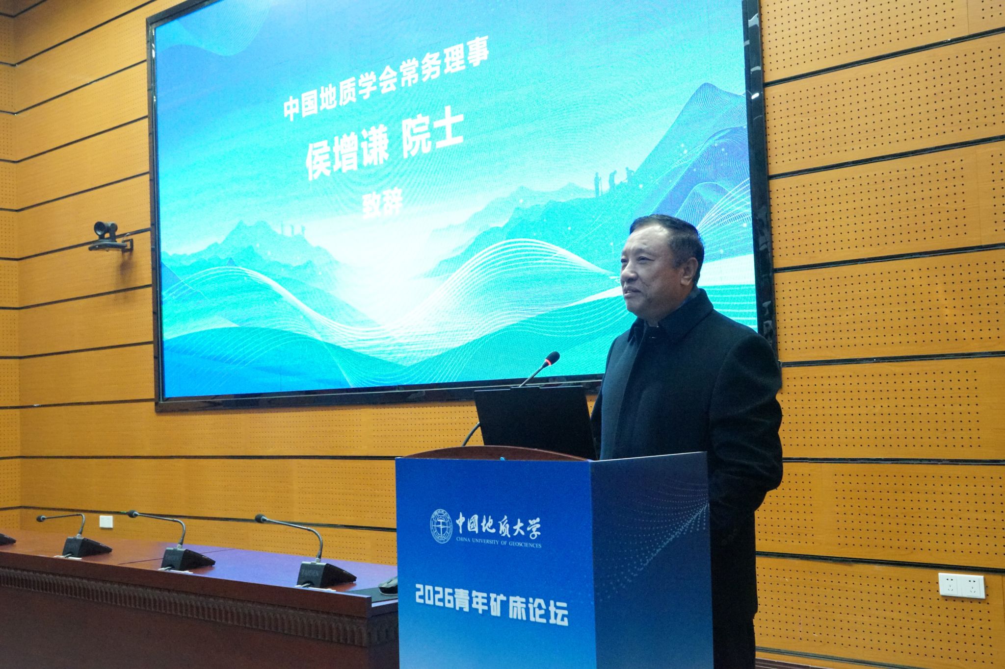 胡瑞忠院士代表主办学会致辞。他指出,青年是科学的未来,是创新最活跃的先锋。当前正处于新一轮找矿突破战略行动与深地探测重大专项实施的关键历史节点,全体地质工作者需要向深部、向新区、向新类型要资源,要依靠新理论、新技术、新方法的突破来破解勘查难题。他希望论坛成为激发思想碰撞的“催化剂”,促进学科交叉与跨界合作的“连接器”。