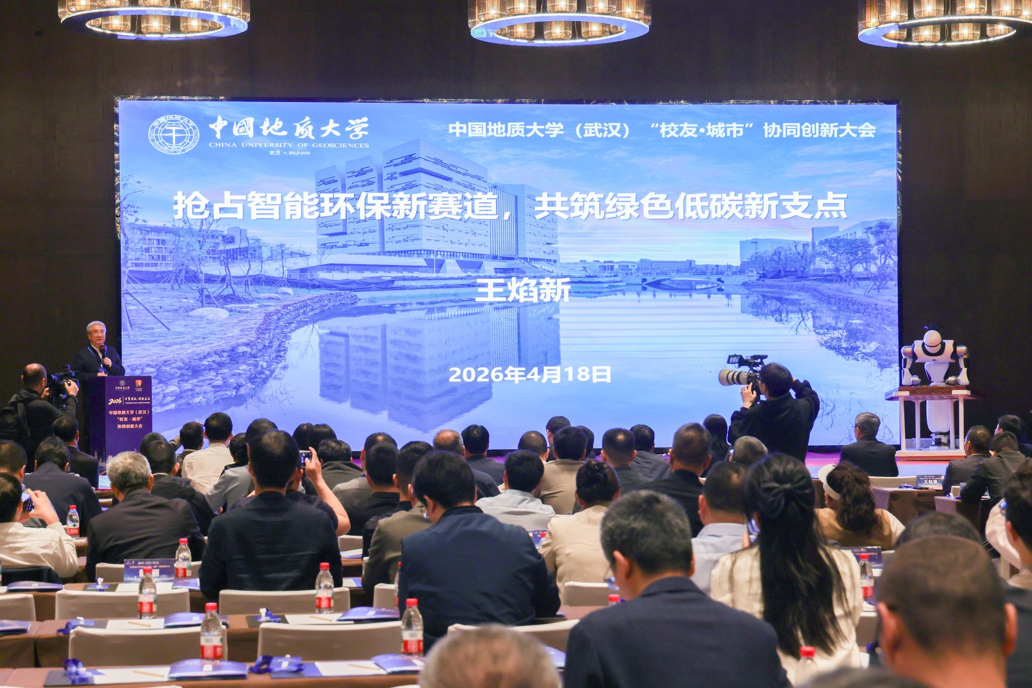 中国科学院院士、我校教授王焰新以《抢占智能环保新赛道,共筑绿色低碳新支点》为题作主旨演讲。