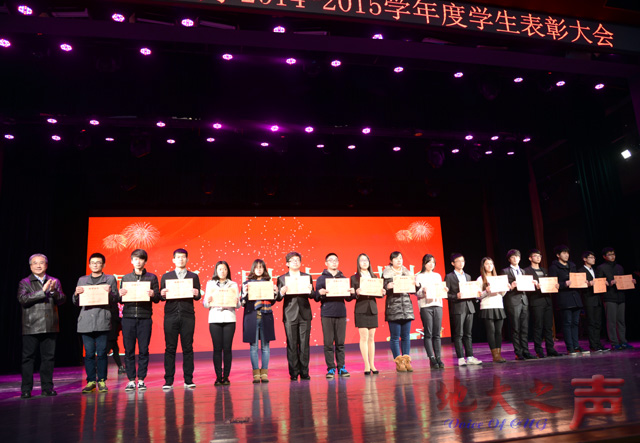 (通讯员高艳丽 陈亚锦 张季媛 刘婷 贺鹏浩 韩俊峰 摄影毕梦茜)2015年12月31日晚7点,我校在弘毅堂举行2014-2015年度学生表彰大会。校长王焰新、校党委副书记傅安洲、副校长唐辉明、赖旭龙、郝芳,1990级校友、武汉四方光电科技董事长熊友辉,相关部门负责人,师生代表参加会议。