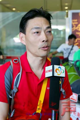 登山队总指挥董范接受媒体采访。