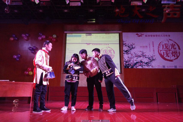 学生们自编、自导、自演,在话剧舞台上演自己的故事。材化学院聊化学、环境学院讲环保、外国语学院用全英文说对白……这些具有鲜明学院特色的剧目,激发了学生对自己专业的认同感和对学科的归属感,引起了学生的共鸣。