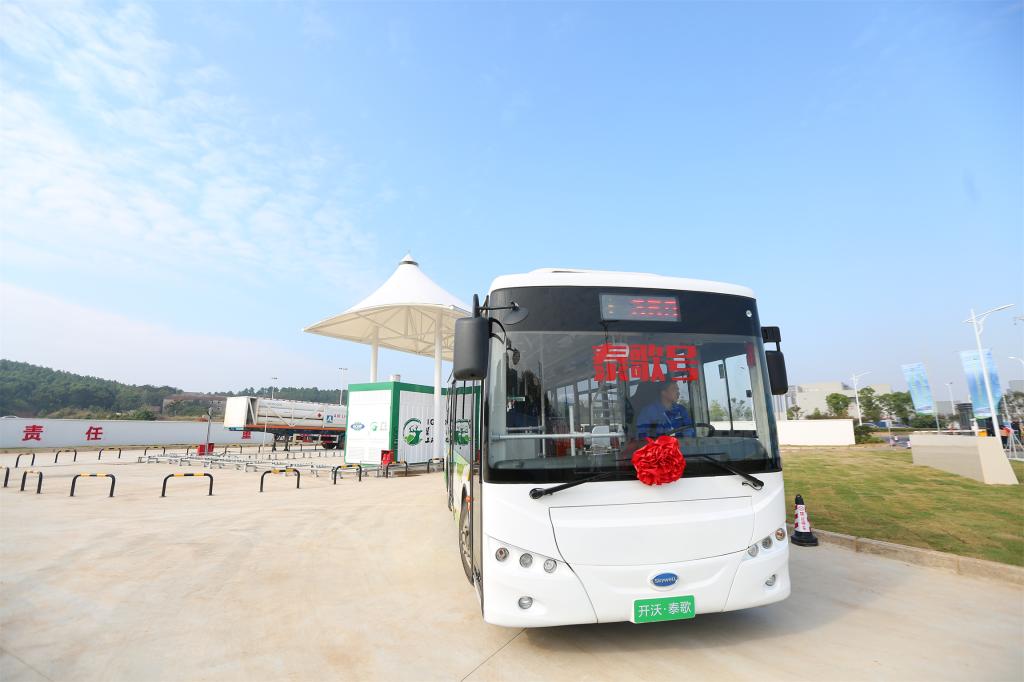 (地大之声通讯员董平)9月28日上午,由武汉地质资源环境工业技术研究院有限公司(以下简称“资环工研院”)和武汉开沃新能源汽车有限公司联合研制的首批氢燃料电池动力公交车,在武汉东湖新技术开发区359路公交线路试运行。由资环工研院全资子公司武汉中极氢能源发展有限公司投资建设的武汉首座加氢站同时启用。这标志着武汉市氢能汽车全面进入商业化示范运行阶段,武汉市氢能产业迈向市场化发展的新阶段。