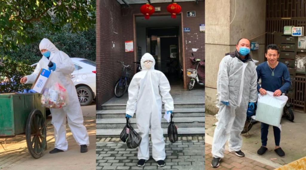 应急突击队胡书林、刘筱、张松帮居民丢垃圾、取药、取快递