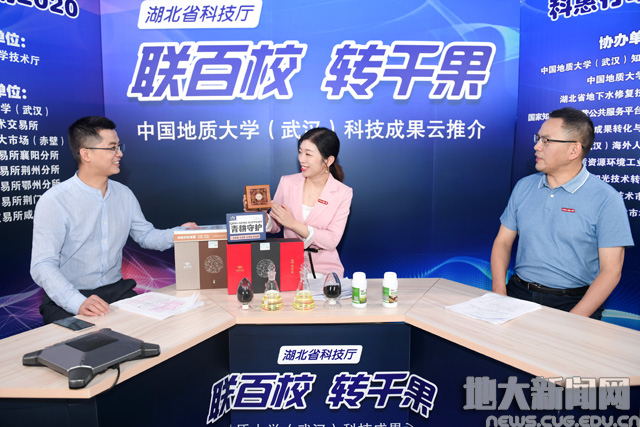 地大新闻网讯(记者庞伟红 通讯员李想姣 摄影张玉贤)7月11日上午,“联百校转千果”科惠行动2020高校成果云推介——中国地质大学(武汉)专场在长江云、淘宝等网络平台同步直播,2个多小时吸引了82.5万人观看,9项科技成果累计被174家企业和技术经纪人认领,意向成交额达到2.17亿元。湖北省科技厅副厅长葛琳,我校党委书记黄晓玫、校长王焰新院士、副校长赖旭龙一同走进直播间。