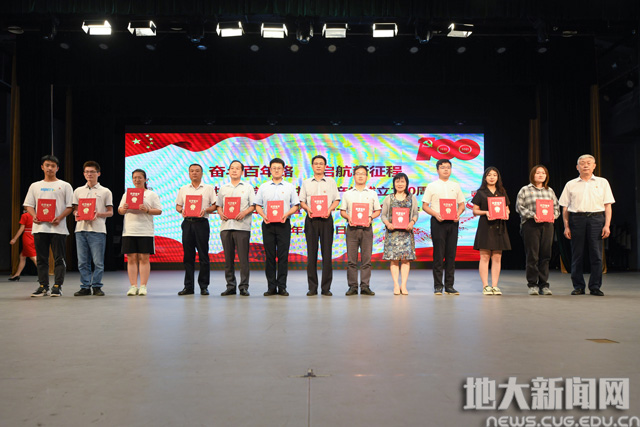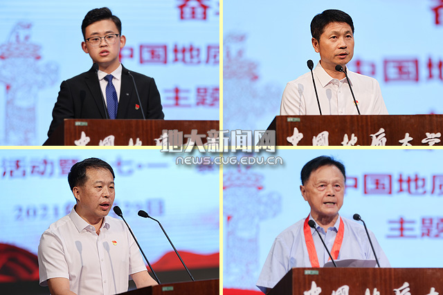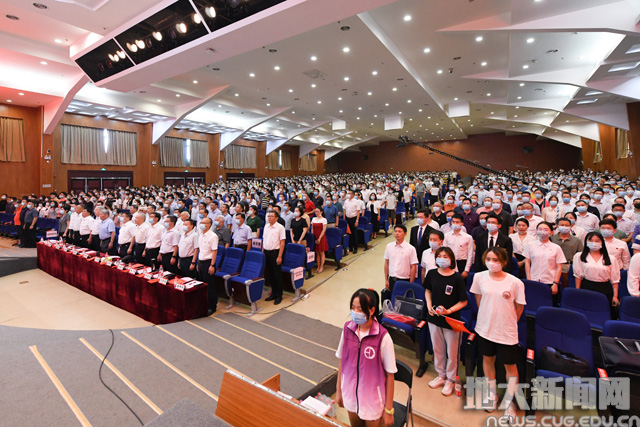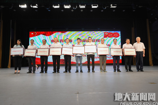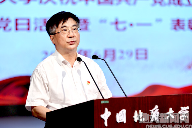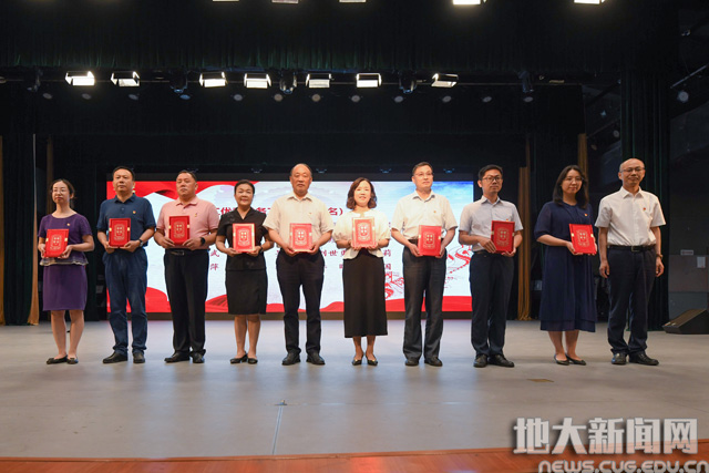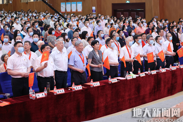 地大新闻网讯(记者庞伟红 摄影王俊芳 田甜 王紫璇)在庆祝中国共产党成立100周年之际,6月29日,我校“奋斗百年路 启航新征程”庆祝中国共产党成立100周年主题党日活动暨“七一”表彰大会在南望山校区弘毅堂举行,中科院院士赵鹏大,退休老校长张锦高,在校校领导,党委常委,校长助理,处级党员干部,党支部书记,受表彰单位和个人代表,新发展党员代表参加大会。校党委副书记唐辉明主持大会。