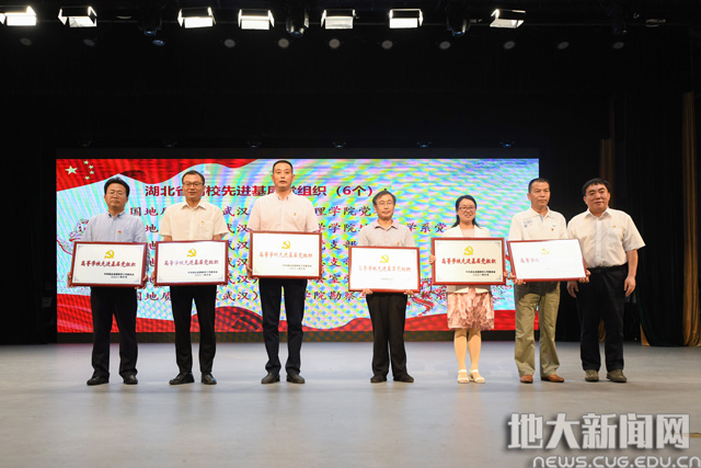校领导为受表彰先进集体和优秀个人颁奖。谢丛姣获评湖北省优秀共产党员;陈刚等5人获评湖北省高校优秀共产党员,李素矿等6人获评湖北省高校优秀党务工作者,经济管理学院党委等6个基层党组织获评湖北省高校先进基层党组织。