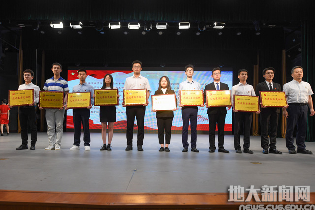 校党委副书记、纪委书记成金华为材料与化学学院党委、工程学院工程地质与岩土工程系党支部、经济管理学院旅游管理系党支部等3个全国党建工作“标杆院系”“样板支部”授牌。