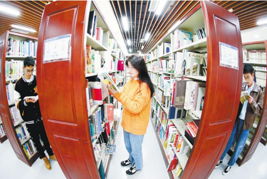 4月23日,中国地质大学(武汉)在图书馆举行第28个世界读书日主题阅读推广活动暨“第七届书香文化节”教授名师荐书仪式。图为同学们在图书馆选择阅读自己喜爱的书刊。
