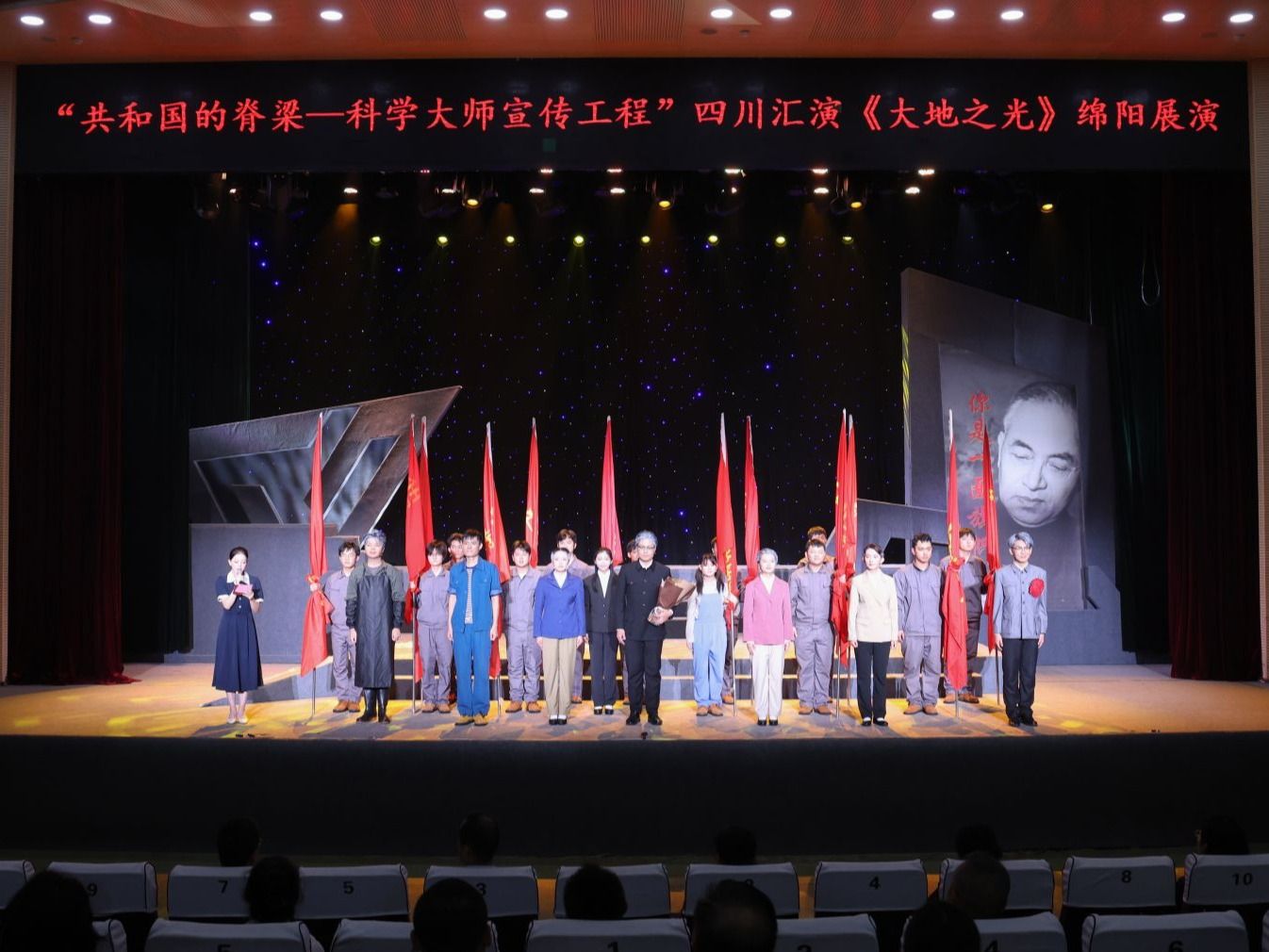 中新网四川新闻10月17日电 近日,“共和国的脊梁——科学大师宣传工程”四川汇演《大地之光》绵阳展演活动在西南科技大学举行。绵阳市科技工作者代表、科学家精神教育基地代表、教育工作者代表和学校师生代表800余人现场观看演出。