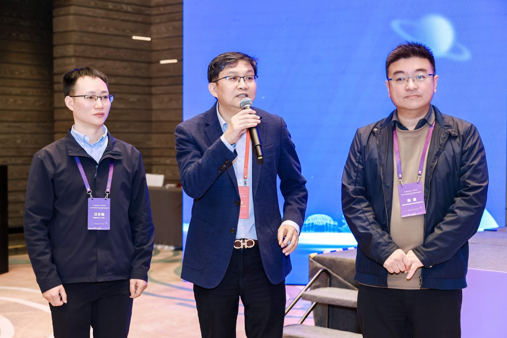 三位研究月壤的专家:汪在聪、徐义刚、陈意(左起)与与会者互动问答。