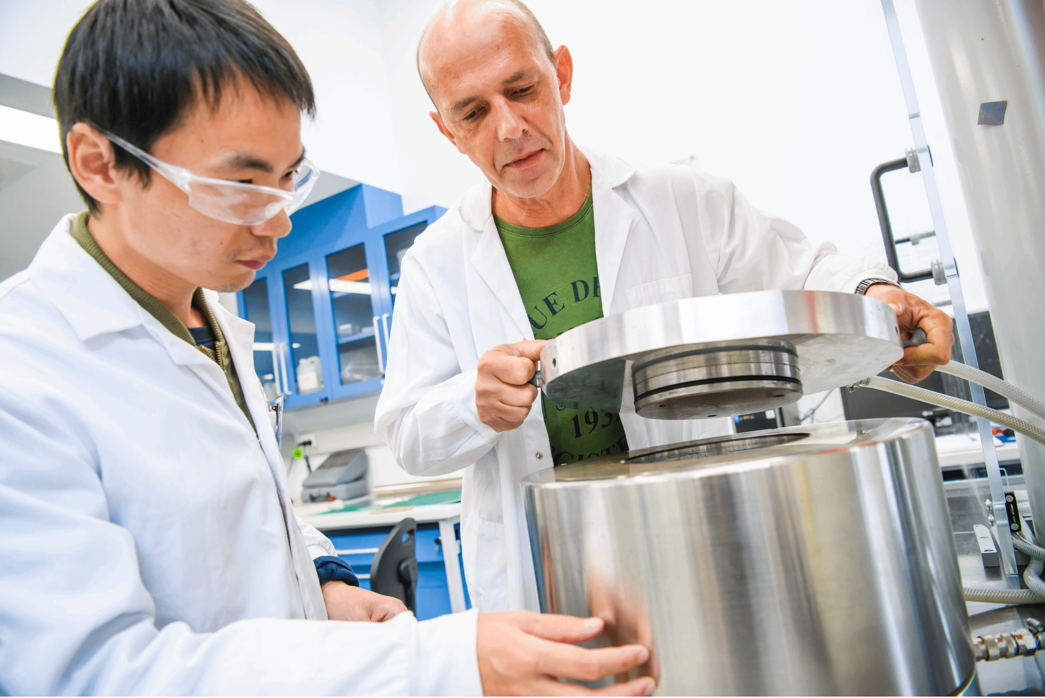 陈春飞教授和澳大利亚Slava博士正在开展高温高压实验。 (受访者供图)