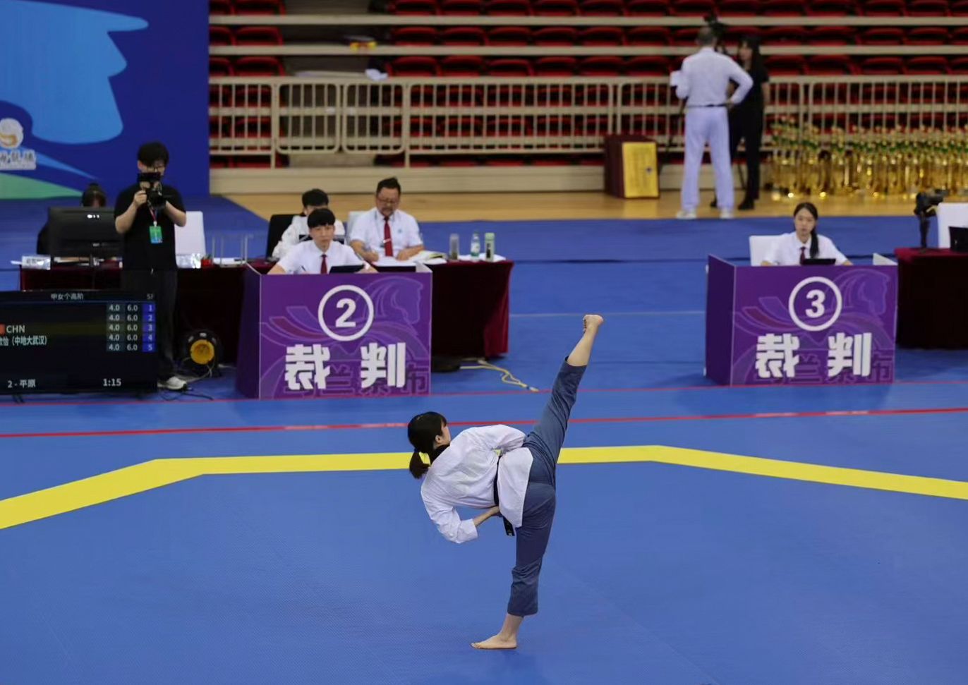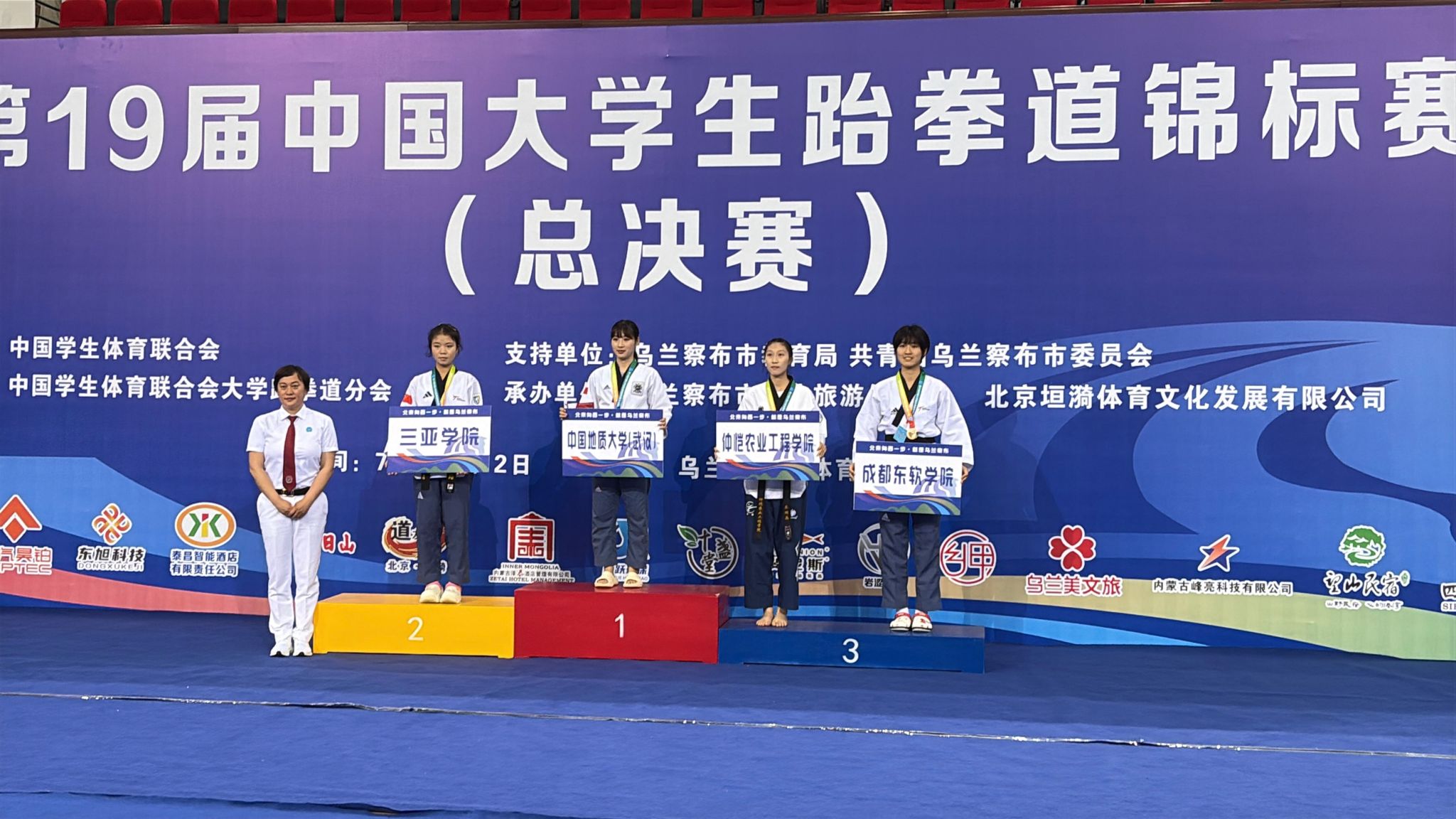 地大新闻网讯 7月6日至11日,第19届中国大学生跆拳道锦标赛(总决赛)在内蒙古乌兰察布举行,本次比赛由中国学生体育联合会主办,中国学生体育联合会大学跆拳道分会执行,是中国大学跆拳道水平最高级别的赛事,共有来自全国155所高校的1090名运动员、教练员参赛。我校跆拳道队谢欣怡同学参加甲组女子个人高阶品势和甲组女子个人段位品势两个项目,经过顽强拼搏,斩获2枚金牌。