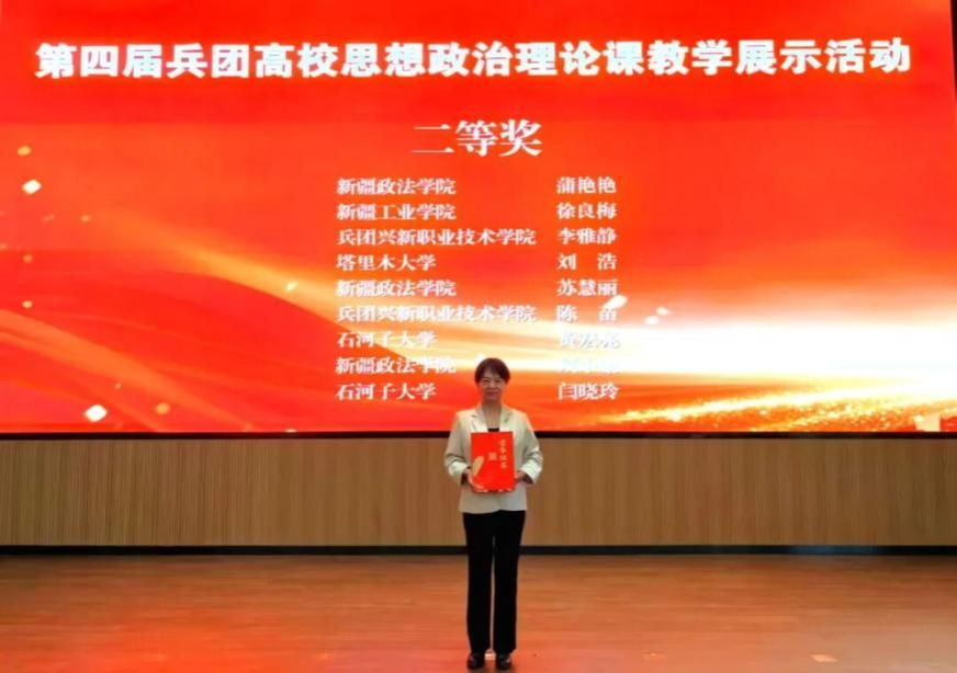 步履不停的援疆岁月里,她的教学生涯迎来全新突破:代表学校参与教学竞赛,接连斩获新疆高校首届《中华民族共同体概论》课程教学展示三等奖、第四届兵团高校思想政治理论课教学展示二等奖。对她而言,三尺讲台的坚守早已超越普通职业范畴,成为深植边疆、与血脉乡情相融的深情牵挂。